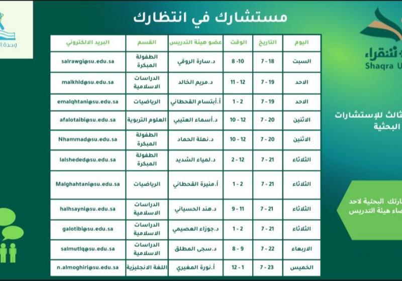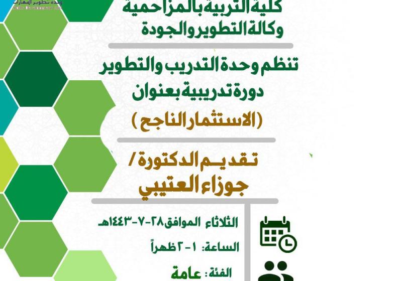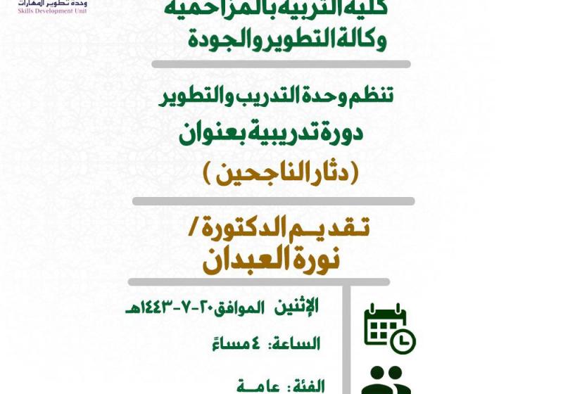الثلاثاء 1 مارس وحدة البحث العلمي و قسم الدرسات الاسلاميه يدعوكما لحضور لقاء العلمي بعنوان اختيارات الإمام الواحدي في التفسير الثلاثاء 1 مارس وحده التدريب والتطوير تدعوكم لحضور دوره تدريبيه بعنوان الاستثمار الناجح الأحد 27 فبراير تدعوكم وحدة خدمه المجتمع لحضور الدوره التدريبيه ترجمات معاني القرآن الكريم بين الواقع والمأمول الاثنين 21 فبراير وحده المكتبات تدعوكم لحضور دوره طريقة الدخولالى المكتبة الرقمية السعودية الاثنين 21 فبراير وحدة التطوير والتدريب تدعوكم لحضور دوره بعنوان دثار الناجحين الاثنين 21 فبراير وحدة التطوير والتدريب بالتعاون مع وحده العلاقات العامه تدعوكم لحضور دوره بعنوان السكرتاريا الإلكترونية الجمعة 18 فبراير خدمة مستشارك في انتظارك للاجابة على استفسارات طالبات الكلية البحثية الأربعاء 16 فبراير تنظم وحده التطوير والتدريب دوره بعنوان المراسلات التطويرية مشاهدة المزيد