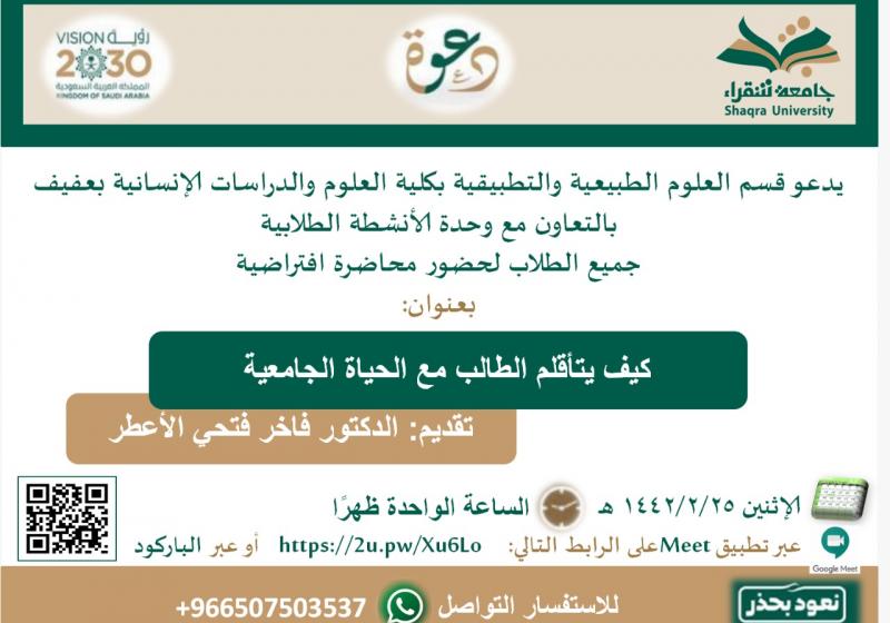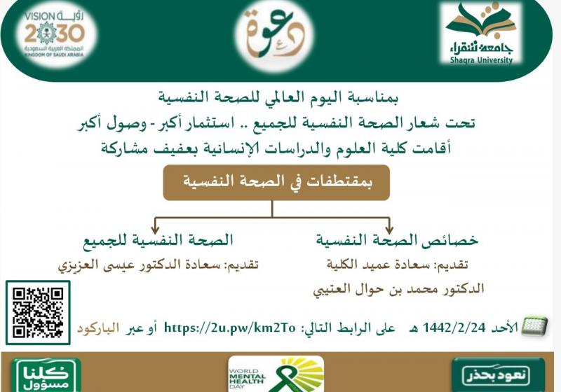 السبت 24 أكتوبر المحليات الصناعية وداء السكري الخميس 22 أكتوبر مسابقة توعوية لجميع الطلاب لأفضل بحث أو مقال أو مبادرة حول تنمية الرقابة الذاتية الأربعاء 21 أكتوبر المواطنة الرقمية الاثنين 19 أكتوبر الكشف المبكر يحدث فرقا الأحد 11 أكتوبر مقتطفات في الصحة النفسية الأحد 11 أكتوبر كيفية إعداد البحث العلمي الجمعة 9 أكتوبر كيف يتأقلم الطالب مع الحياة الجامعية الجمعة 9 أكتوبر كيفية إعداد الاختبارات والواجبات والتكليفات عبر المنصة الإلكترونية للجامعة مشاهدة المزيد