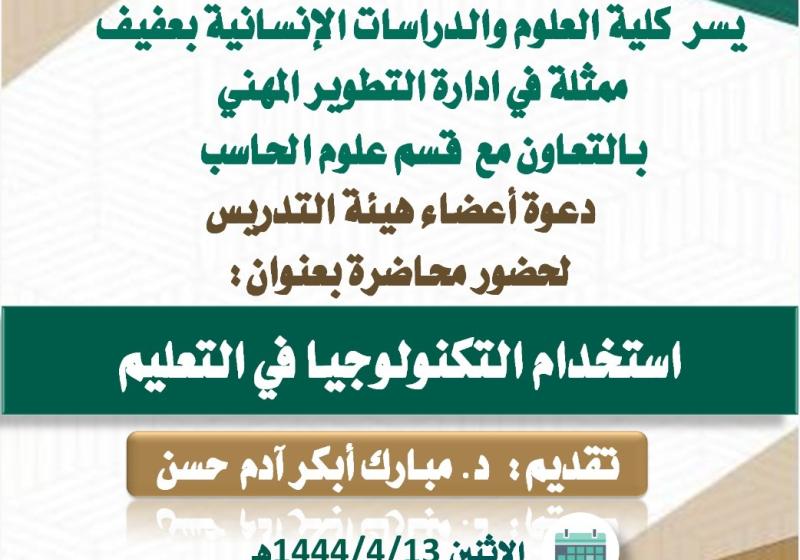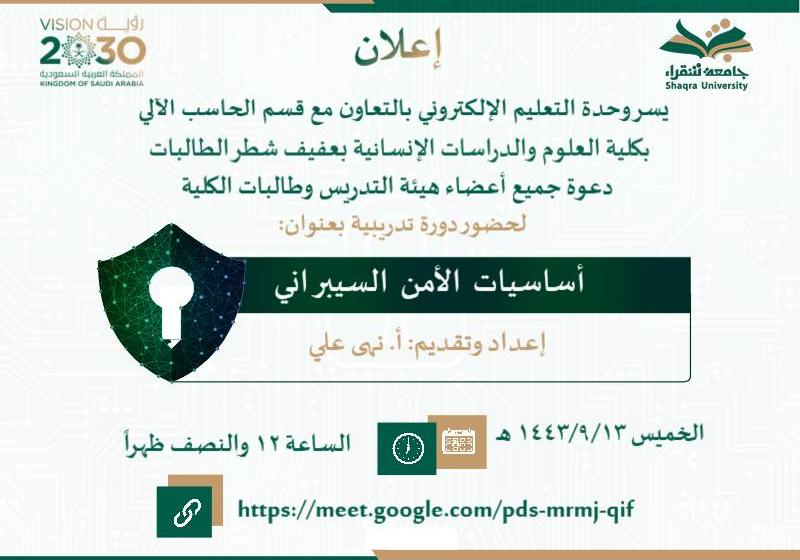 الخميس 22 ديسمبر مساعدة الطلاب من خلال الخدمات الإرشادية الخميس 10 نوفمبر مسابقة تحت عنوان: النزاهة ومكافحة الفساد الثلاثاء 8 نوفمبر جدول الاختبارات النهائية -شطر الطلاب -كلية العلوم والدراسات الانسانية بعفيف للفصل الدراسي الأول 1444هـ الاثنين 7 نوفمبر استخدام التكنولوجيا في التعليم الاثنين 31 أكتوبر مخرجات تعلم برامج القسم السبت 29 أكتوبر الإحتفال باليوم العالمي للجودة 1444 هـ الثلاثاء 19 أبريل الحفل الختامي للأنشطة الخميس 14 أبريل أساسيات الأمن السيبراني مشاهدة المزيد