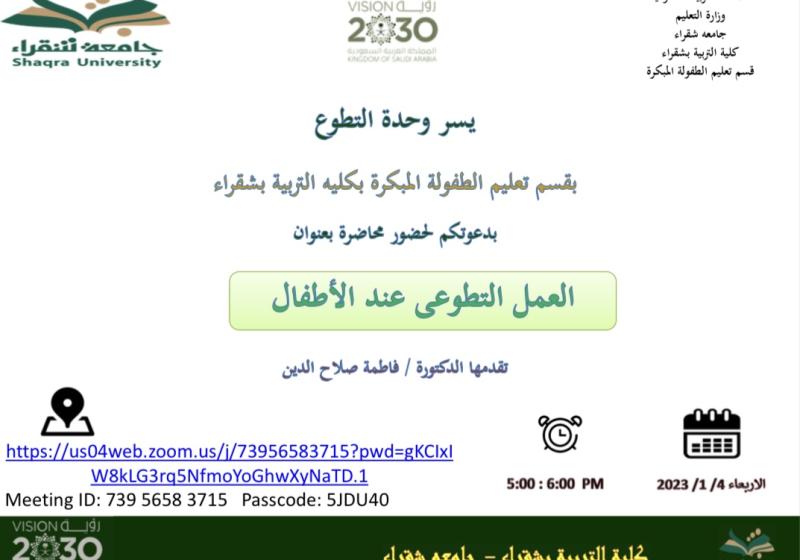 محاضرة بعنوان العمل التطوعي عند الأطفال .