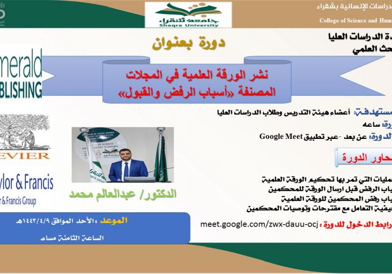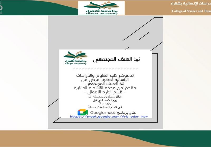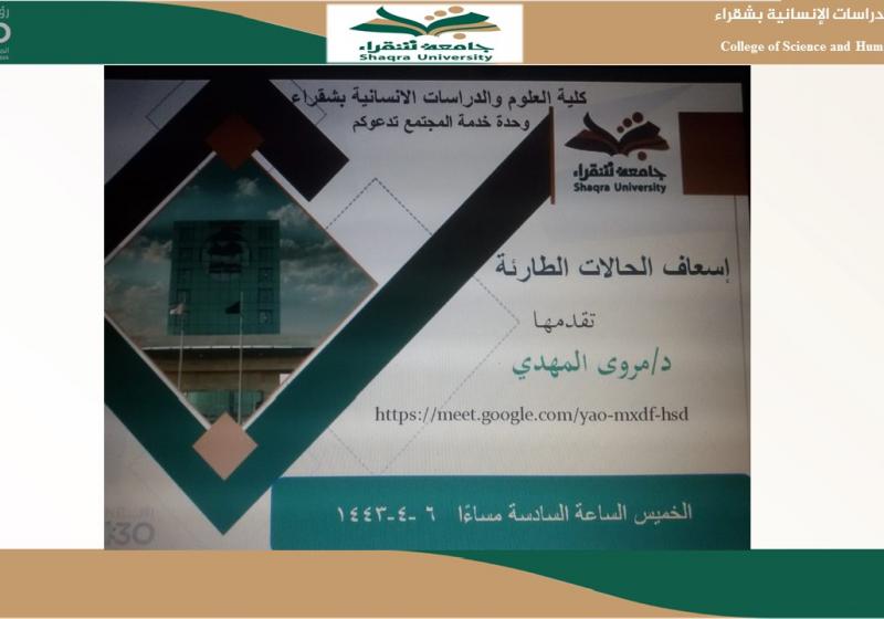 السبت 13 نوفمبر دورة بعنوان "نشر الورقة العلمية في المجلات المصنفة :أسباب الرفض والقبول" الخميس 11 نوفمبر إسعاف الحالات الطارئة- دورة تدريبية الأربعاء 10 نوفمبر الحفاظ على المال العام- ورشه عمل بقسم إدارة الأعمال الثلاثاء 9 نوفمبر جوائز الجودة الشاملة- دورة تدريبية الثلاثاء 9 نوفمبر وحدة التطوير والجودة بالكلية تتشرف بدعوتكم لزيارة معرض الجودةتحت شعار " الجودة للتميز المستدام" الأحد 7 نوفمبر حلقه نقاش بقسم علم النفس بعنوان " أساليب التفكير وكيفية سير المعلومات في الذاكرة" الأحد 7 نوفمبر الاحتفال بالذكرى السابعة للبيعة الأحد 7 نوفمبر نبذ العنف المجتمعي مشاهدة المزيد