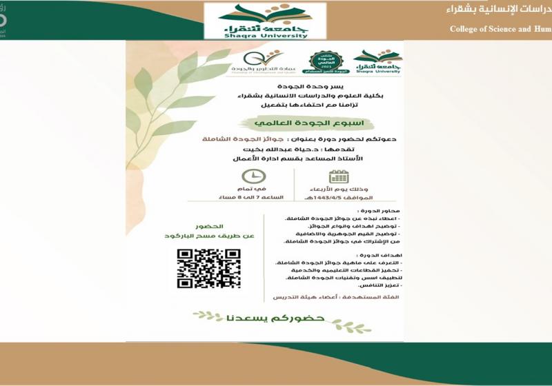الثلاثاء 9 نوفمبر وحدة التطوير والجودة بالكلية تتشرف بدعوتكم لزيارة معرض الجودةتحت شعار " الجودة للتميز المستدام"