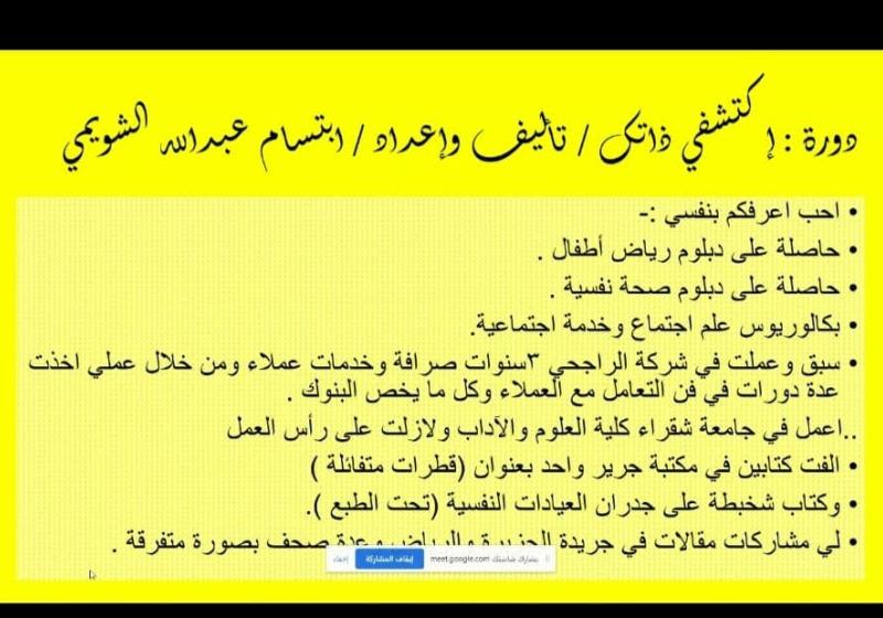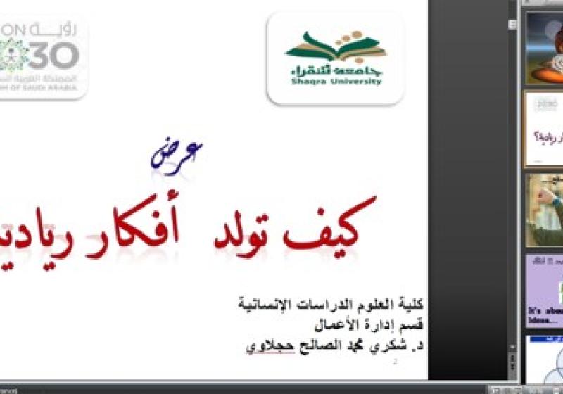 الثلاثاء 4 أكتوبر "كتابة البحث العلمي" دورة تدريبية بشطر الطالبات الأحد 2 أكتوبر "كيف تولد أفكار ريادية" دورة تدريبية لمنسوبي دار رعاية الايتام "أخاء" بشقراء الخميس 29 سبتمبر "Global English as a Trend in Language Teaching" ندوة بقسم اللغة الانجليزية السبت 24 سبتمبر استقبال الطالبات المستجدات بشطر الطالبات الأحد 18 سبتمبر البرنامج التعريفي للطلاب المستجدين بقسم الرياضيات الثلاثاء 13 سبتمبر "اليوم العالمي للقانون" بشطر الطالبات الثلاثاء 13 سبتمبر " كيف تحققين ذاتك" دورة تدريبية بوحدة تنمية المهارات الثلاثاء 13 سبتمبر " اللوائح الأكاديمية والتنظيمية ومفهوم الإرشاد الأكاديمي للطالبة الجامعية " دورة لوحدة الارشاد الاكاديمي مشاهدة المزيد