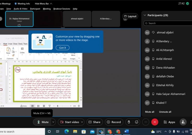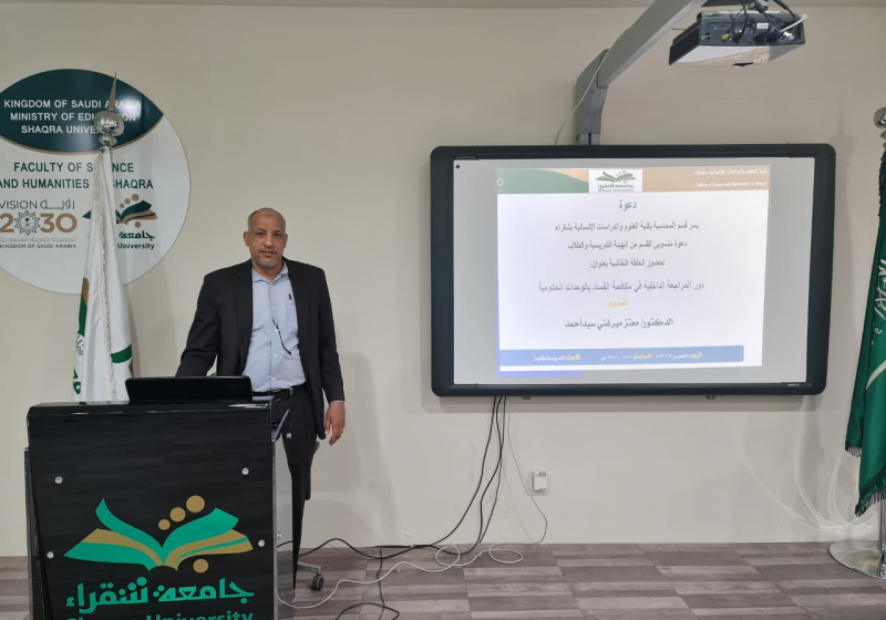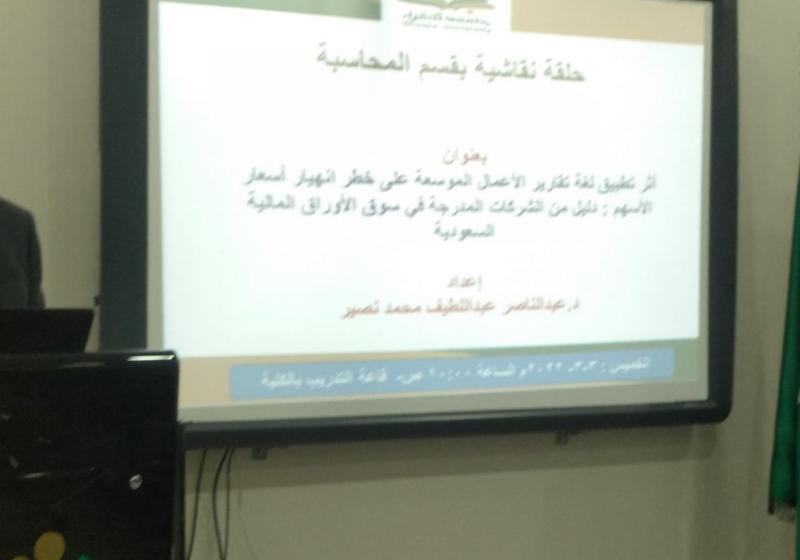 الاثنين 12 سبتمبر "أصبوحة شعرية و أدبية" لطلاب الكلية الخميس 7 أبريل "دور المراجعة الداخلية في مكافحة الفساد بالوحدات الحكومية " حلقة نقاش بقسم المحاسبة الأربعاء 6 أبريل " كيفية مواجهة المملكة العربية السعودية للفساد المالي و الإداري" ورشه عمل لوحدة خدمه المجتمع الأحد 27 مارس " النوم الصحي " محاضرة توعوية بقسم اللغة الإنجليزية الأربعاء 23 مارس " مخاطر الإصابة بالسكري " محاضرة طلابية الثلاثاء 8 مارس اليوم العالمي للسرطان 2022 الاثنين 7 مارس أثر تطبيق لغة تقارير الأعمال الموسعة على خطر انهيار أسعار الأسهم : دليل من الشركات المدرجة في سوق الأوراق المالية السعودية" حلقة نقاش بقسم المحاسبة الأحد 13 فبراير " نظافة البيئة " نشاط توعوي بشطر الطالبات مشاهدة المزيد