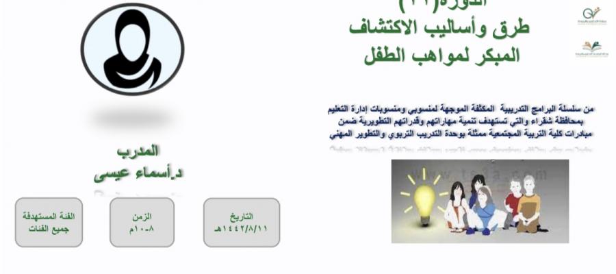 البرامج التدريبية الموجهة لمنسوبي التعليم (11) طرق وأساليب الاكتشاف المبكر لمواهب الطفل .
