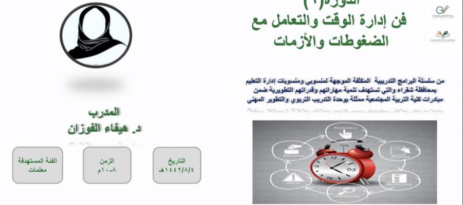 البرامج التدريبية الموجهة لمنسوبي التعليم -(9) فن إدارة الوقت والتعامل مع الضغوطات والأزمات .