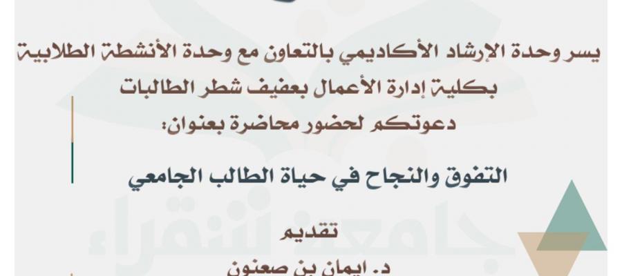 يسر وحدة الإرشاد الاكاديمي بالتعاون مع وحدة الأنشطة الطلابية بكلية إدارة الأعمال بعفيف شطر الطالبات