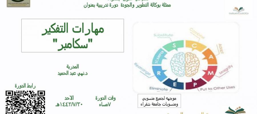 تعلن كلية التربية بشقراء عن دورة تدريبية بعنوان (مهارات التفكير ''سكامبر'' )