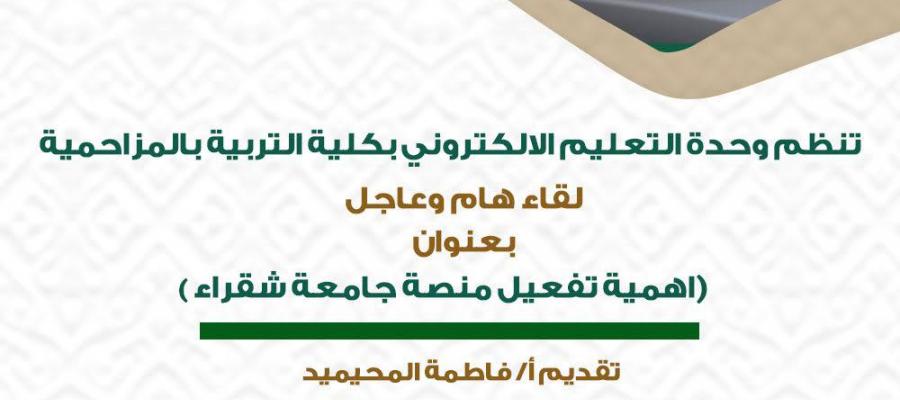 تنظم وحدة التعليم الاكتروني لقاء هام وعاجل بعنوان (اهمية تفعيل منصة جامعة شقراء)