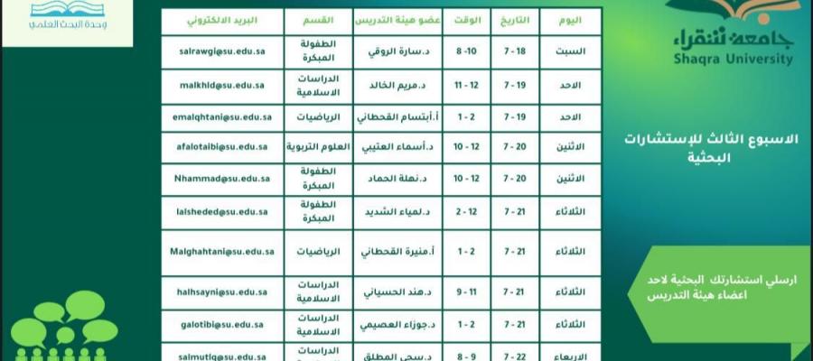 تقدم وحدة البحث العلمي بكلية التربية بالمزاحمية خدمة مستشارك في انتظارك للاجابة على استفسارات طالبات الكلية البحثية