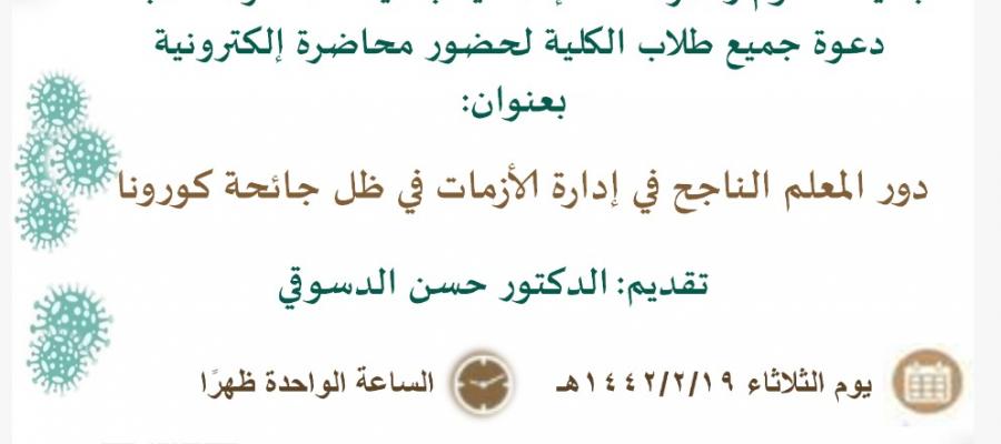 دور المعلم الناجح في إدارة الأزمات في ظل جائحة كورونا