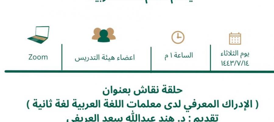 Topic: الإدراك المعرفي لدى معلمات اللغة العربية لغة ثانية