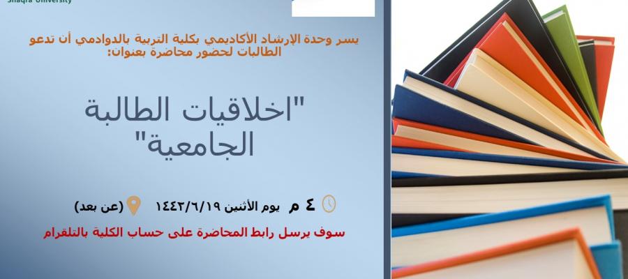 محاضرة للطالبات بعنوان" أخلاقيات الطالبة الجامعية"