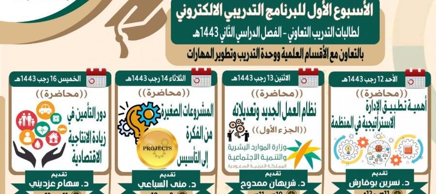 فعاليات الأسبوع الأول للبرنامج التدريبى الإلكترونى/ كلية إدارة الأعمال بعفيف (طالبات)