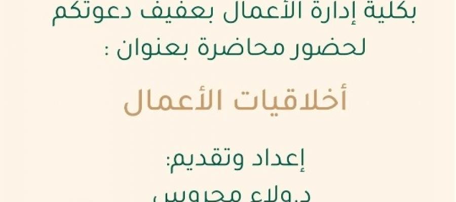 محاضرة بعنوان : أخلاقيات الاعمال/ بكلية إدارة الأعمال بعفيف