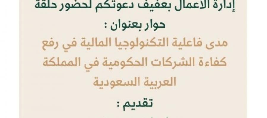حلقة نقاشية حول: مدى فاعلية التكنولوجيا المالية فى رفع كفاءة الشركات الحكومية بالمملكة العربية السعودية/بكلية إدارة الأعمال بعفيف
