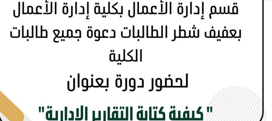 دورة بعنوان: كيفية كتابة التقارير الإدارية/ بكلية إدارة الأعمال بعفيف (طالبات)