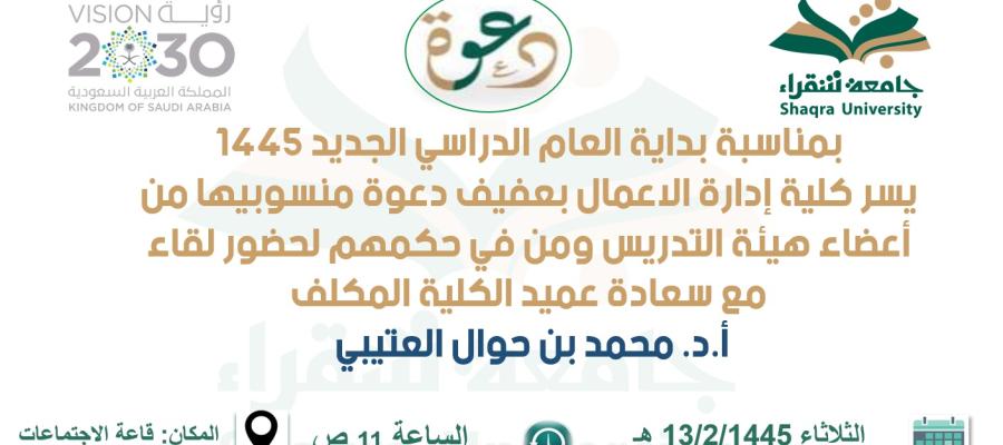 اللقاء الترحيبى لسعادة عميد كلية إدارة الأعمال بعفيف مع أعضاء هيئة التدريس