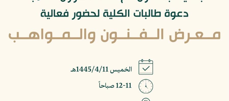 فعالية بعنوان: " معرض الفنون والمواهب "/ بكلية ادارة الاعمال بعفيف (طالبات)