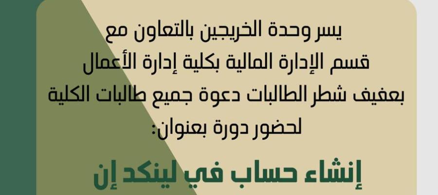 دورة بعنوان: "إنشاء حساب فى لينكد إن"/ بكلية إدارة الأعمال بعفيف(طالبات)