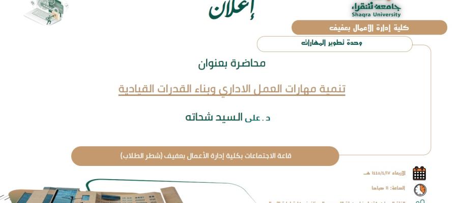 فعالية بعنوان: تنمية مهارات العمل الاداري وبناء القدرات القيادية / بكلية إدارة الاعمال بعفيف