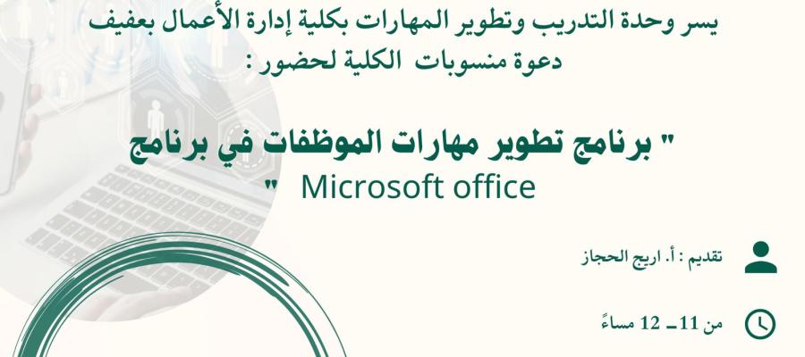 برنامج تطوير مهارات الموظفات فى Microsoft Office بكلية إدارة الأعمال بعفيف/ شطر الطالبات