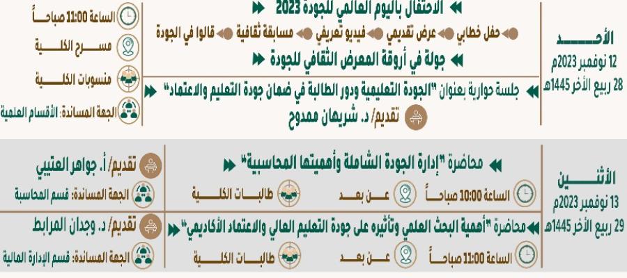 فعاليات أسبوع الجودة العالمى 2023 / بكلية إدارة الأعمال بعفيف (شطر الطالبات)