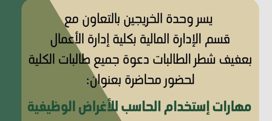 محاضرة بعنوان : مهارات استخدام الحاسب الآلى للأغراض الوظيفية/ بكلية إدارة الأعمال بعفيف