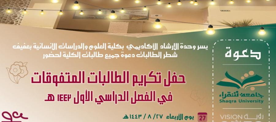 حفل تكريم الطالبات المتفوقات في الفصل الدراسي الأول 1443 هـ