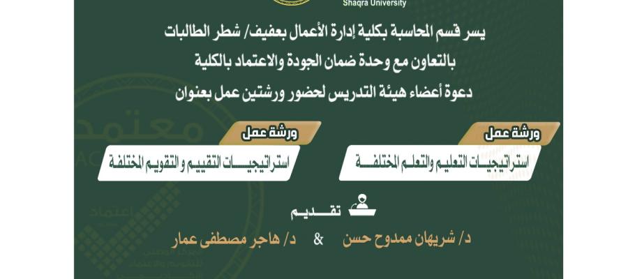 لحضور ورشتي عمل بعنوان: استراتيجيات التعليم و التعلم المختلفة& استراتيجيات التقييم والتقويم المختلفة