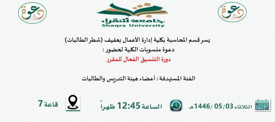دعوة منسوبات الكلية لحضور دورة بعنوان :
