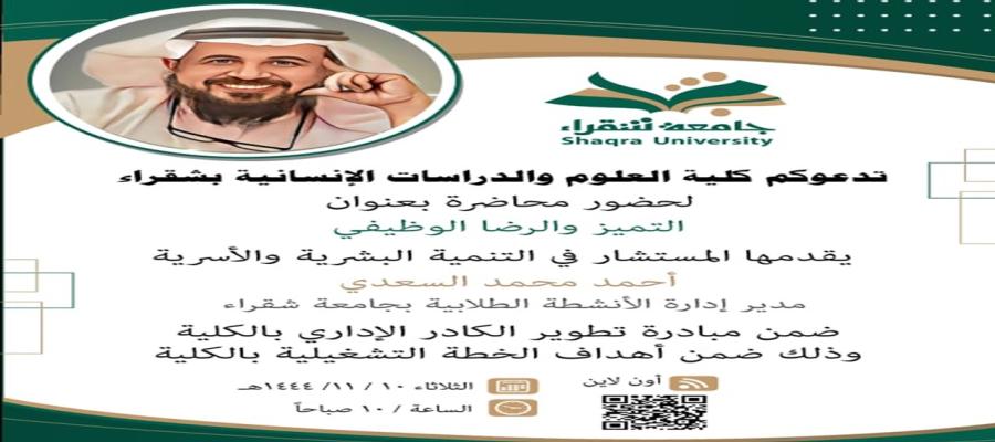 "التميز و الرضا الوظيفي" محاضرة للكادر الإداري ضمن مبادرة تطوير الكادر الإداري بالكلية