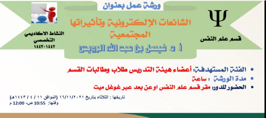 الشائعات الإلكترونية وتأثيراتها المجتمعية -ورشة عمل بقسم علم النفس