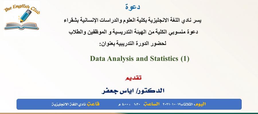 دورة تدريبية بنادي اللغة الإنجليزية بعنوان "Data Analysis and Statistics (1)"