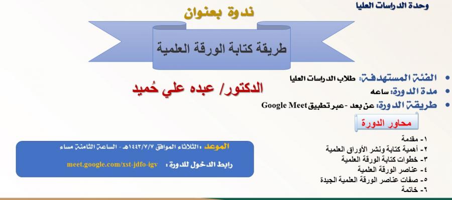 طريقة كتابة الورقة العلمية - دورة لطلاب الدراسات العُليا