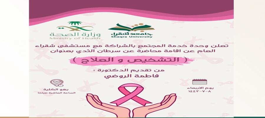 " التشخيص والعلاج" محاضرة توعوية عن سرطان الثدي بشطر الطالبات بالتعاون مع مستشفي شقراء