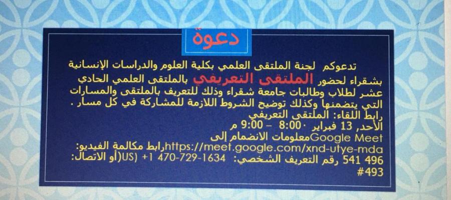 ملتقي طلابي تعريفي بالملتقي العلمي الحادي عشر لطلاب و طالبات جامعه شقراء