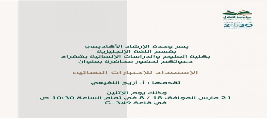 " الاستعداد للاختبارات النهائية" محاضرة بقسم اللغة الإنجليزية
