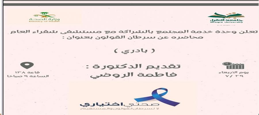 "بادري" محاضرة توعوية عن سرطان القولون بمشاركه مستشفى شقراء
