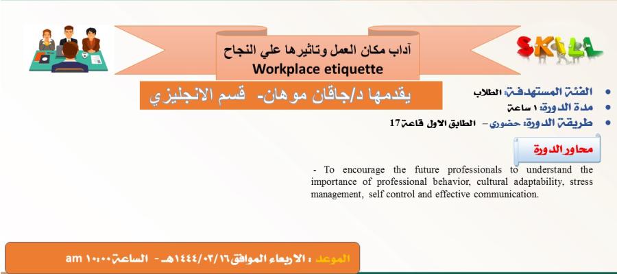 "آداب مكان العمل وتأثيرها علي النجاح" ورشه عمل بقسم اللغة الإنجليزية