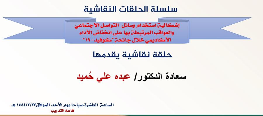 إشكالية استخدام وسائل التواصل الاجتماعي والعواقب المرتبطة بها على انخفاض الأداء الأكاديمي خلال جائحة ”كوفيد- 19" - حلقة نقاش بقسم إدارة الأعمال