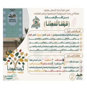 تعلن كلية إدارة الأعمال بعفيف ممثلة في وحدة المسؤولية المجتمعية بشطر الطالبات