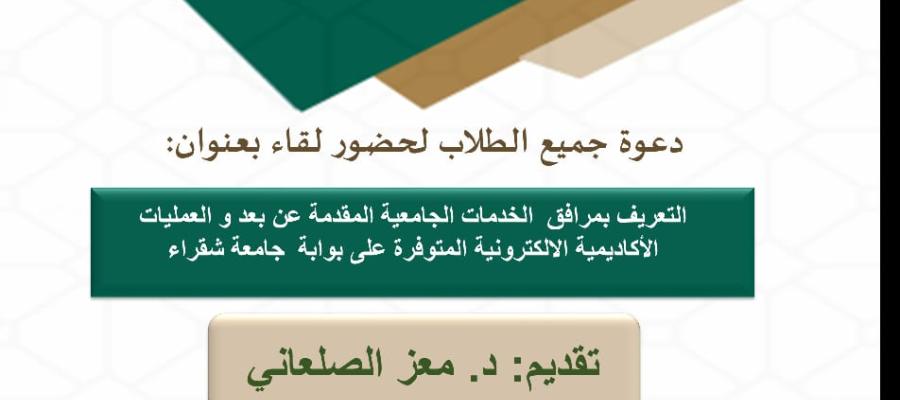 التعريف بمرافق الخدمات الجامعية المقدمة عن بعد والعمليات الأكاديمية الالكترونية المتوفرة على بوابة جامعة شقراء