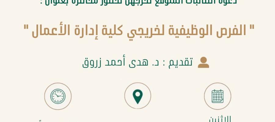 دعوة الطالبات المتوقع تخرجهن بالكلية لحضور محاضرة بعنوان: