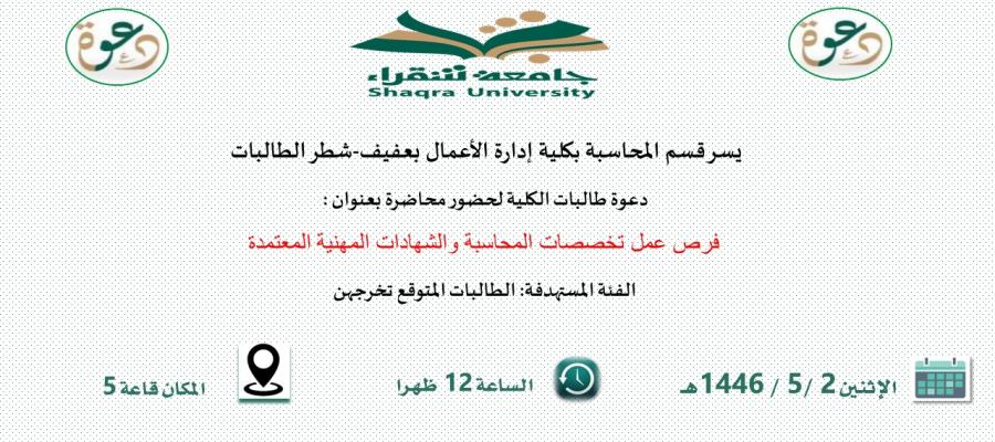 يسر قسم المحاسبة بكلية إدارة الأعمال بعفيف-شطر الطالبات