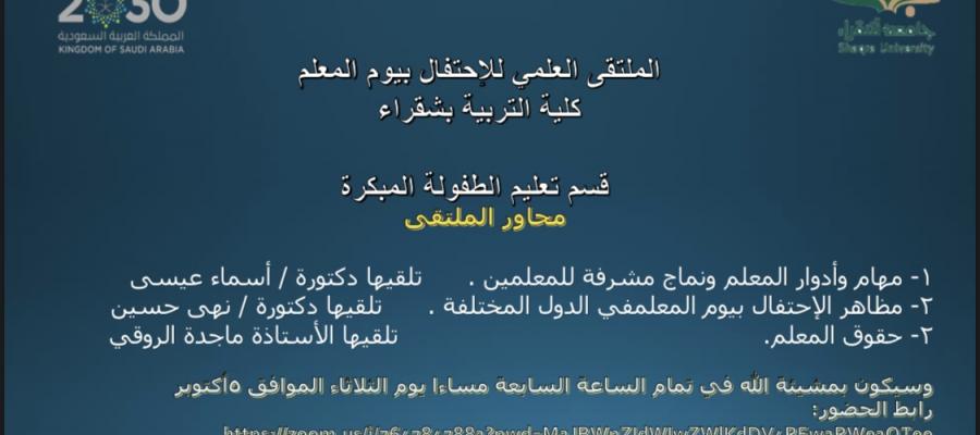 الملتقى العلمي للإحتفال بيوم المعلم بكلية التربية بشقراء .