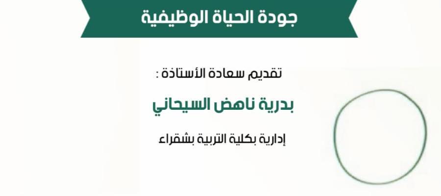 تعلن وحدة التطوير والجودة بكلية التربية بشقراء عن إقامة محاضرة بعنوان (جودة الحياة الوظيفية ).