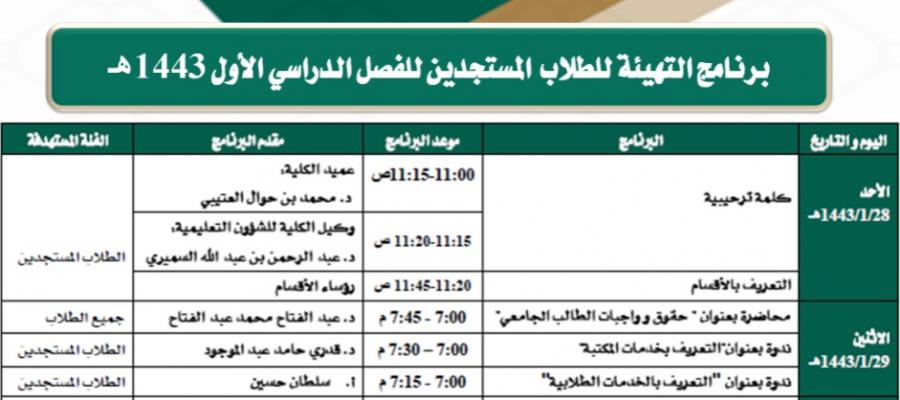 برنامج التهيئة للطلاب المستجدين للفصل الدراسي الأول 1443 هـ