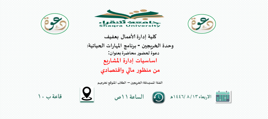 لحضور دورة محاضرة بعنوان: اساسيات إدارة المشاريع من منظور مالي واقتصادي