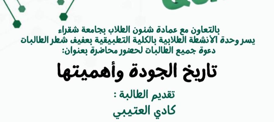محاضرة بعنوان(تاريخ الجودة وأهميتها) - الكلية التطبيقية بعفيف